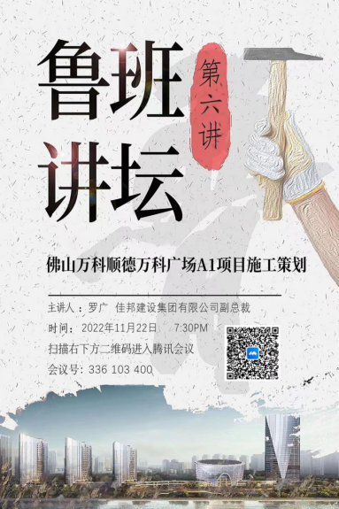 罗广从佛山万科顺德万科广场A1项目的项目概况、项目团队及管理要点、场地布置、施工部署、进度管理、质量管理、安全管理七个方面阐述了佛山万科顺德万科广场A1项目的施工策划及具体施工过程。最后罗广校友寄语学弟学妹们要具备学习的心、敬畏的心和光明的心,成就自己为终生学习者、深度思考者、责任承担者、问题解决者和健康生活者。