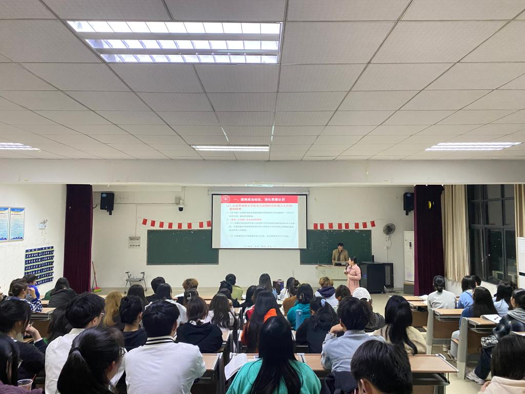 3月17日晚,外国语学院“做‘有理想、有本领、有担当’的团学干部”专题培训班第三讲在外语楼612开讲。外国语学院党委副书记作了题为《大学生党员及团学干部在疫情防控中的责任担当》专题培训,全体辅导员、全体学生党员、团学干部参加了培训会,培训会由学工办主任张伟平主持。