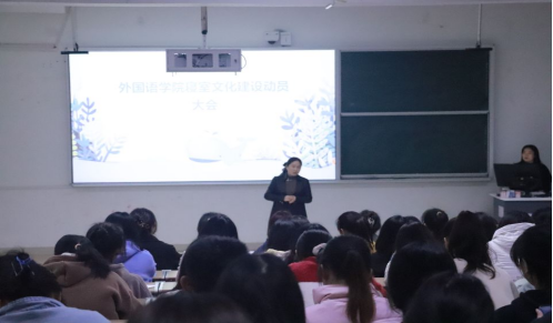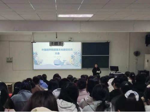为加强宿风建设,强化学生安全意识,营造和谐、整洁的宿舍氛围,以全新的面貌迎接本科教育教学审核评估专家入校,3月30号晚上,我院在外语楼612召开宿舍文化建设-寝室长动员大会。学院党委副书记周艳红出席会议并讲话,会议由学院分管宿舍老师许莉主持。