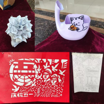 外语楼1楼大厅各种创意作品琳琅满目,有手工作品、绘画作品、剪纸作品,他们都是同学们结合自己的兴趣爱好技能,利用废弃的易拉罐、塑料瓶、纸箱等材料制作而成。同学们以自己的一双巧手,按照自己的独特创意,使旧物品重新焕发出生机活动开展以来,同学们还以环保为主题创作了大量书法作品、短视频作品、摄影作品等,通过创作,提高了动手能力,提升了环保意识