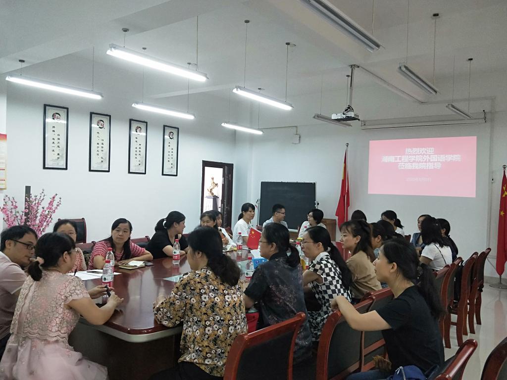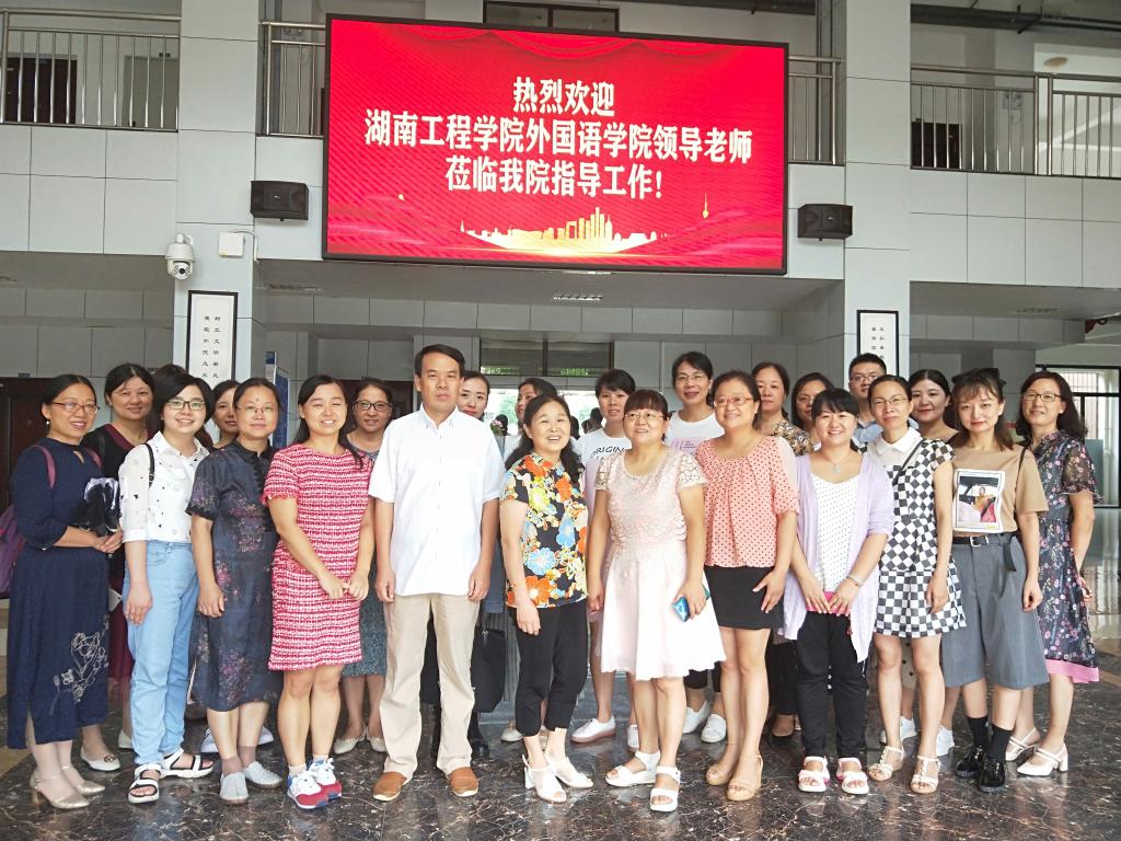 9月9日上午,湖南工程学院外国语学院大学英语教研室主任黄永存一行二十余人来永利外国语学院考察交流。外国语学院院长张平以及相关教研室实验室正副主任参加了座谈交流。