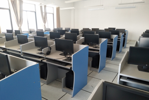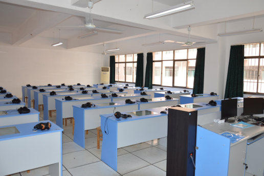 高级情景语音实验室现有仪器设备数量为112台件,平均设备完好率为95%。本实验室构建了一个语言技能教学互动平台,主要为学生的语言技能课程课堂教学和实践提供实验场地,配备了学生学习计算机终端和教室局域网,能满足视频展播、录音录像与回放、语法检查与写作建议、师生问答记录存档、课堂讨论与交流等教学要求,还可运用于口语、阅读和写作等技能考试等。