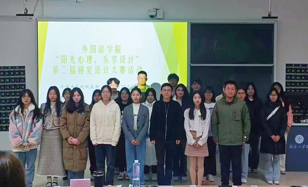 为塑造和谐的寝室氛围,倡导寝室文明,展示大学生良好精神面貌,近期,外国语学院举办了以"阳光心理,乐享设计"为主题的寝室设计大赛。11月14日晚,寝室设计大赛决赛在外语楼612教室举行。学院党委书记刘斌、副书记周艳红、全体辅导员出席比赛并担任评委。