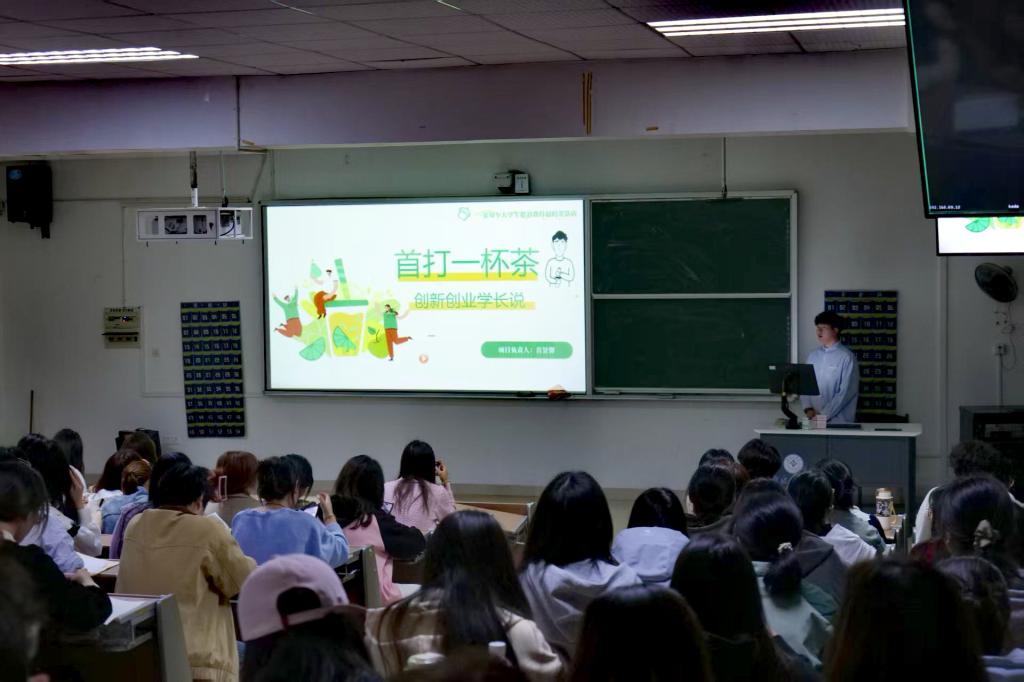 他鼓励同学们在校期间多参与创新创业实践活动,提升个人的问题解决能力,并从创新创业方向选择、创新创业计划具体实施、校内创新创业实践平台利用等方面给同学们提供了创新创业的思路。他建议同学们要善于学习,在学习过程中要注重培养创新思维,勇于尝试新事物和新方法,不断拓展视野和知识面,建立人脉资源,为未来的创业之路储备力量。