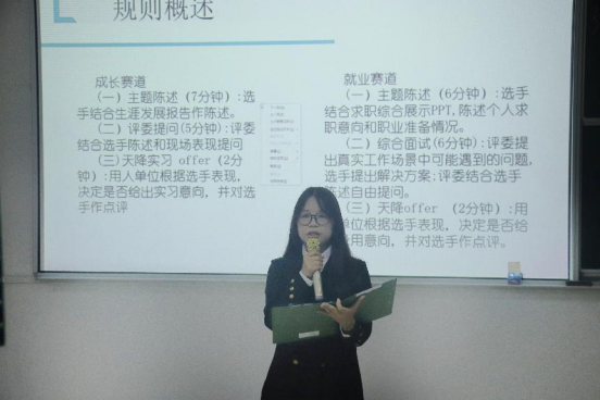 为加强大学生职业生涯教育,增强大学生职业规划意识,促进高质量充分就业。1114日晚,外国语学院在外语楼612举办大学生职业规划大赛,外国语学院学工办主任蒋蔚、辅导员彭方凯参加