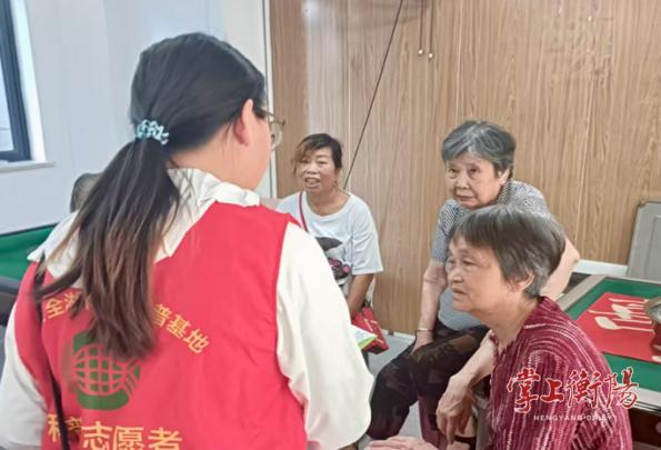 ▲志愿者在小区活动室面向老年人开展宣讲。