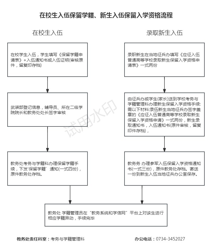 在校生入伍保留学籍、新生入伍保留入学资格流程