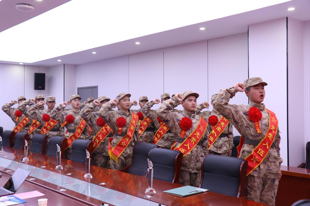 全体新兵进行了庄严宣誓,洪亮誓言回荡在校园上空。