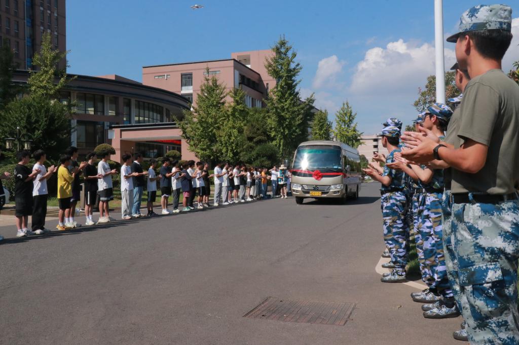 仪式结束后,与会人员合影留念。全体入伍学生身着军装、佩戴红花,在热烈的掌声中列队登车,光荣前往军营。