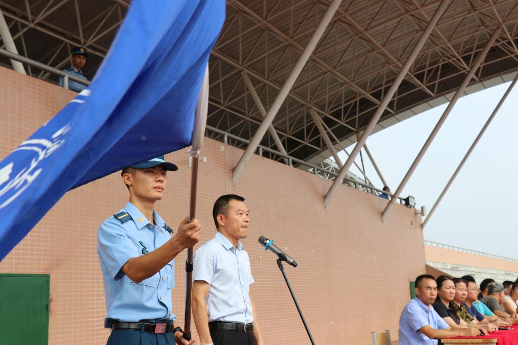 9月15日上午9点,2019级新生军训开训动员大会在北田径运动场举行,党委委员、副校长曹执令出席仪式并宣布2019级新生军训开训,大会由武装部部长刘仁能主持。