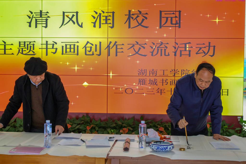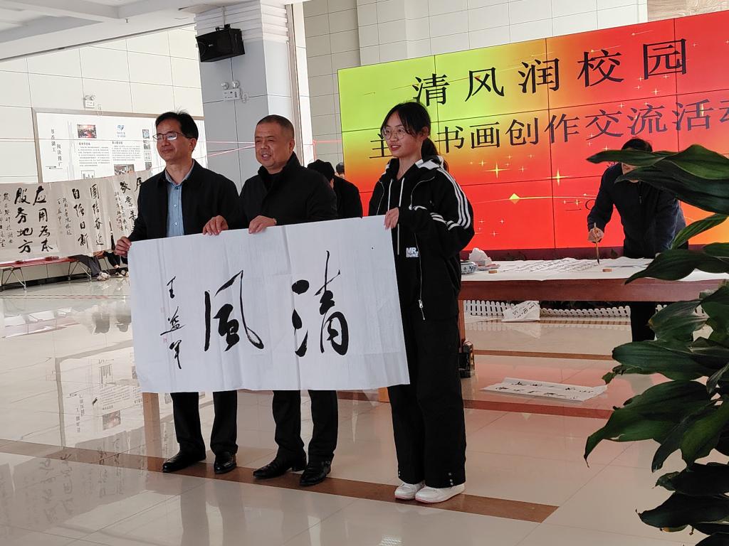 今年是雁城书画院受邀第二次走进学校为师生举办廉洁文化进校园活动,由雁城书画院院长王益军带队,张小平、舒迪柔、徐波等老师与现场的师生们一起创作书画作品,交流创作感受。王益军表示,“能走进大学校园参加这样的活动很有意义,既感受到学校对校园文化建设和党风廉政教育的重视,也感受到青年学生对文化艺术的浓厚兴趣,雁城书画院将义不容辞走进校园为传播文化献一份力量”。