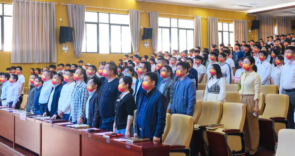 活动在慷慨激昂地齐唱国歌中拉开序幕。与会师生现场观摩了第五届“挑战杯”大学生创业竞赛校赛优秀项目展演。经过层层选拔、反复打磨,11个项目从报备校赛的66份作品中脱颖而出。他们或关注太阳能光热转换,研发新型介质,致力科技创新与未来产业;或关注家乡艾草、山笋等惠农扶贫产业,投身乡村振兴与脱贫攻坚;或关注厨余垃圾废油处理、水污染处理技术,致力生态环保和可持续发展;或关注教育“双减”、大学生就业、舒心出行等民生福祉,投身城市治理和社会服务。
