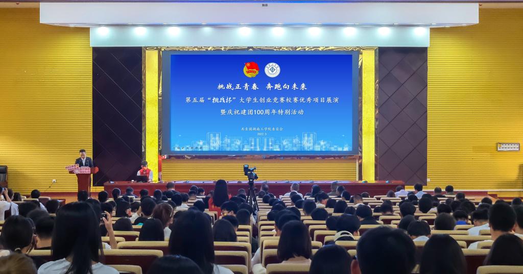 5月3日下午4点,永利500人报告厅座无虚席,庆祝建团百年宣传片《共青春》主题曲《有我》的超燃旋律穿越时光,追忆中国青年百年奋斗与峥嵘,会场处处洋溢着青春的气息。永利“挑战正青春 奔跑向未来”第五届“挑战杯”大学生创业竞赛校赛优秀项目展演暨庆祝建团百年特别活动在这里举行。校党委委员、副校长刘龙昌出席活动并寄语青年,活动由校团委书记贺令亚主持。