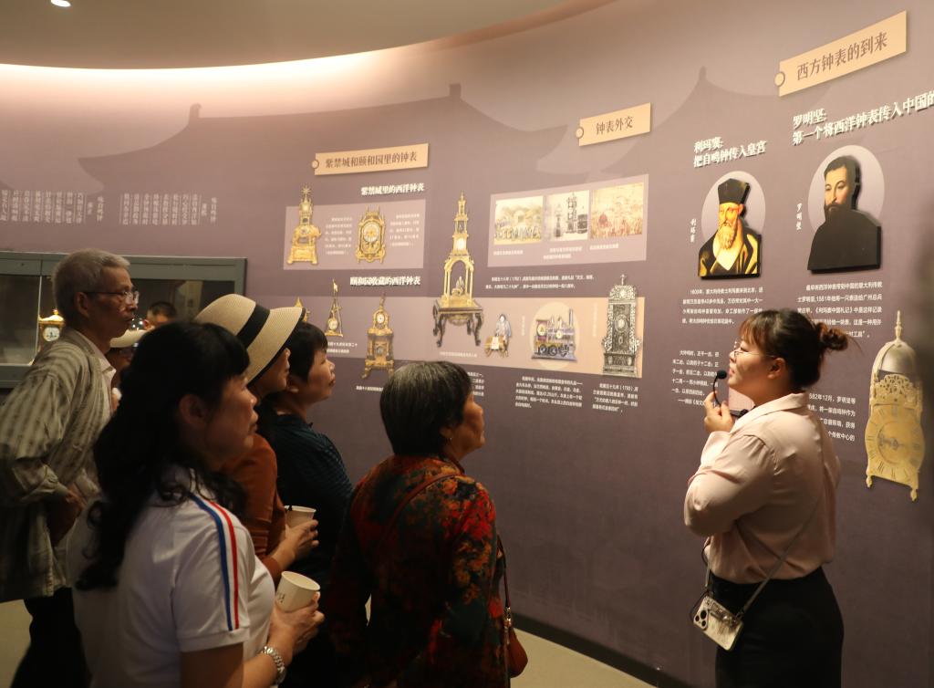 老同志们在船山时间谷钟表博物馆参观