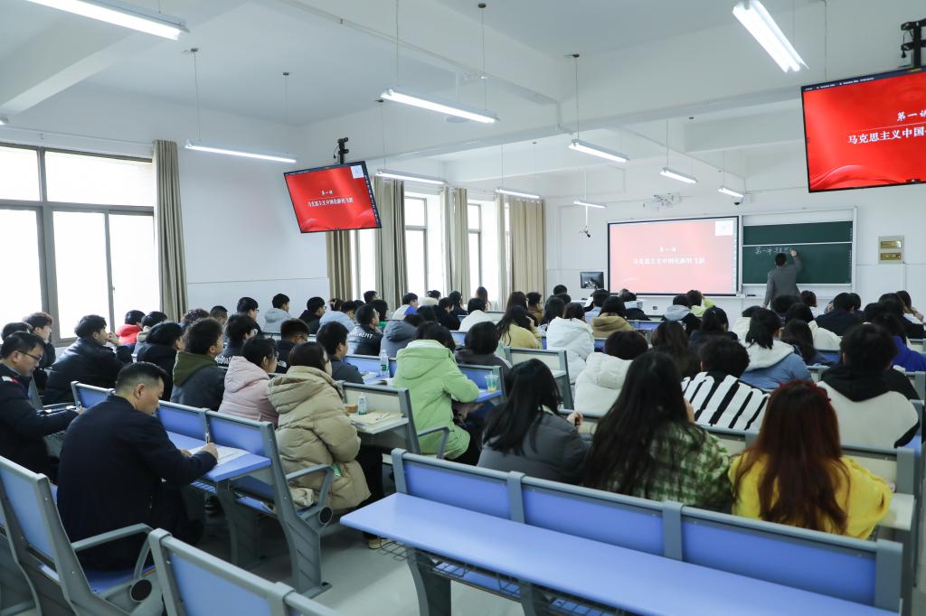 校党委书记宋克慧在社科楼203教室认真旁听了马克思主义学院周小结老师讲授的《马克思主义基本原理概论》,校长曹执令在安工楼5306教室听取了马克思主义学院罗元云老师讲授的《习近平新时代中国特色社会主义思想概论》,两位领导在课后与授课教师、学生们进行了交流,详细了解课程建设及教学效果情况。