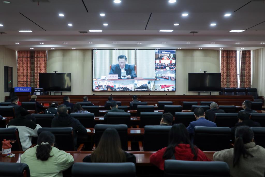 会议第一阶段,与会人员收看了省教育厅召开的2023年全省教育系统疫情防控工作视频会议。省教育厅党组书记、厅长夏智伦出席会议并讲话,省委教育工委委员、省教育厅党组成员、副厅长刘静主持会议。