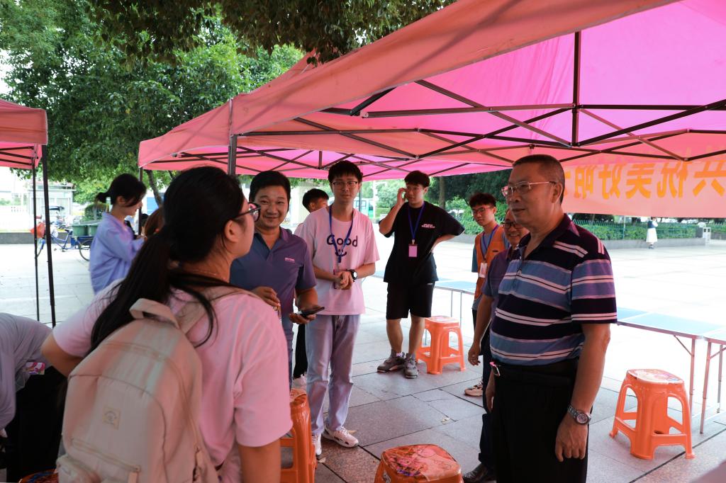 9月16日上午,校党委副书记、校长曹执令,校党委委员、副校长,党委宣传部统战部部长刘龙昌一行赴阳光服务大厅、卓越广场、新建学生宿舍、监控指挥中心、衡阳市火车站、衡阳东站等地,深入检查指导迎新工作,亲切慰问一线工作人员和志愿者。