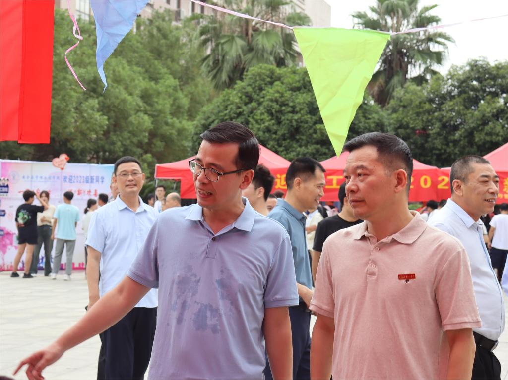 在阳光服务大厅、卓越广场、新建学生宿舍等地,曹执令、刘龙昌一行亲切慰问了各学院坚守迎新工作一线的老师和同学们,并与他们亲切交流,详细了解各个学院独具特色的迎新举措以及新生报到情况。对于今年各部门高效协同、有序有爱的迎新工作表示高度赞扬。同时,曹执令、刘龙昌一行还与来自五湖四海的新生及家长亲切交谈,聆听他们对永利的初印象,倾听他们对学校管理的意见与建议,鼓励2023级新生积极规划大学生活,勉励他们不懈努力,争取学有所获,学有所成,为实现中华民族伟大复兴贡献青春力量。