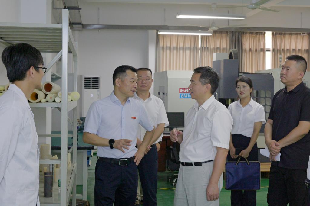 在汽车零部件研究院,曹叠峰深入了解了学校科研条件,听取了科研人员关于最新设备、科研项目和成果的汇报,重点考察了学校在基础设施、科研平台建设、校企合作、产教融合等方面的进展。他鼓励学校科研工作者以市场需求为导向,深化校企合作,积极创新,为地方经济社会发展贡献力量。