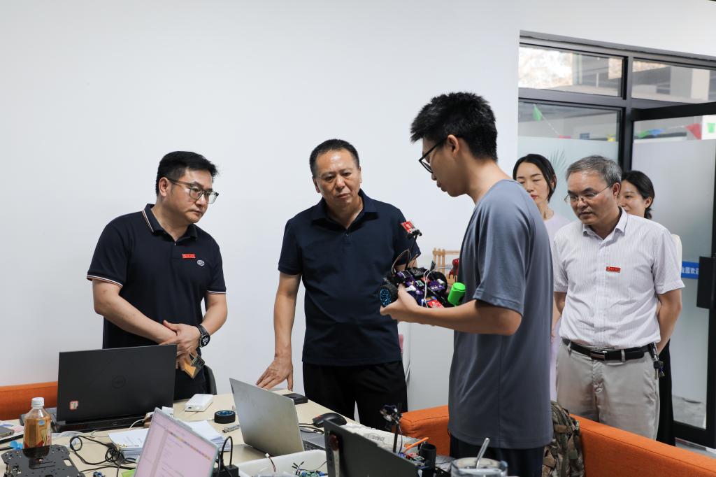 在大学生创业园,何建雄及园区工作人员介绍了创业园基本运行情况及“七个一”政策落实进展。曾建华一行先后考察了震守建筑、衡韵文创、超能聚材、智芯新材等入驻项目,重点了解了学校招生就业、园区管理服务、项目孵化培育、创业典型案例相关情况,详细听取负责人和指导教师介绍,亲切询问技术研发转化、产品应用推广、团队建设运营等具体情况。