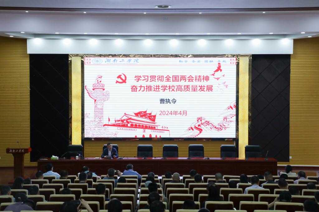 曹执令以《学习贯彻全国两会精神 奋力推进学校高质量发展》为题,全面、系统、详细地解读了全国两会精神和习近平总书记考察湖南的重要讲话、重要指示精神。
