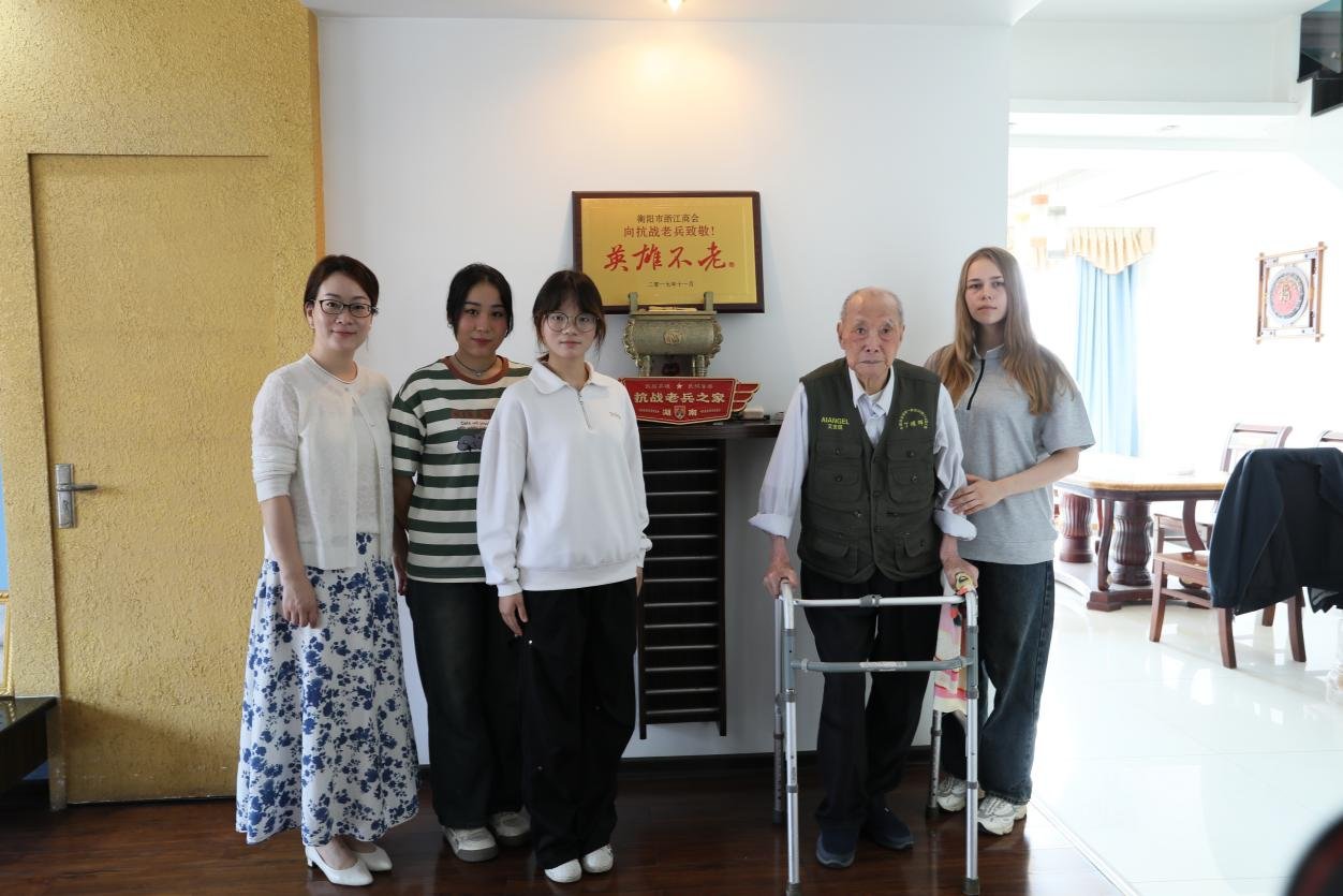 2025年4月29日上午,在中国人民抗日战争胜利80周年纪念日前夕,304永利集团官网民革支部联合国际教育学院,带领来自俄罗斯、哈萨克斯坦的国际学生代表及中国学生代表前往衡阳,看望101岁高龄的抗战老兵丁耀辉。此次活动旨在通过跨文化交流,引导青年铭记历史、珍视和平。
