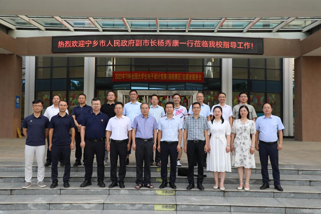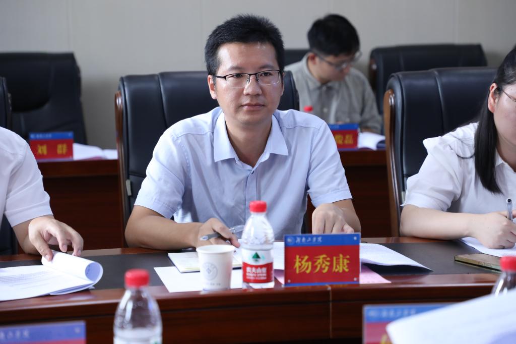 何建雄代表学校对杨秀康副市长一行表示诚挚欢迎,并介绍了学校的历史沿革及办学特色。何建雄指出,此次交流是继校长曹执令率队来宁开展政校企产学研交流、访企拓岗活动,双方签订校地战略合作协议后,校地双方为落实协议内容开展的又一次精准对接。何建雄强调,双方要务实重行,着力推动科技互动、科技成果供需对接、科技成果转化、政企人员继续教育和短期培训、大学生实践实习就业等工作落地落实,大力推动宁乡产业链和学校创新链精准对接、宁乡人才链和学校教育链有机互动,让学校的科研智慧、项目精华、人才团队在宁乡这片沃土上演绎精彩。