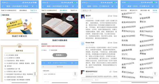 活动期间,“线上打卡+线下分享”积分赛制吸引超5000名学生参与,235支团队角逐团体奖项。优课课群集成学习、投票、讨论功能,实现深度交互,人人可参与、处处有收获,形成了“轻应用+优课课群”智慧阅读矩阵。