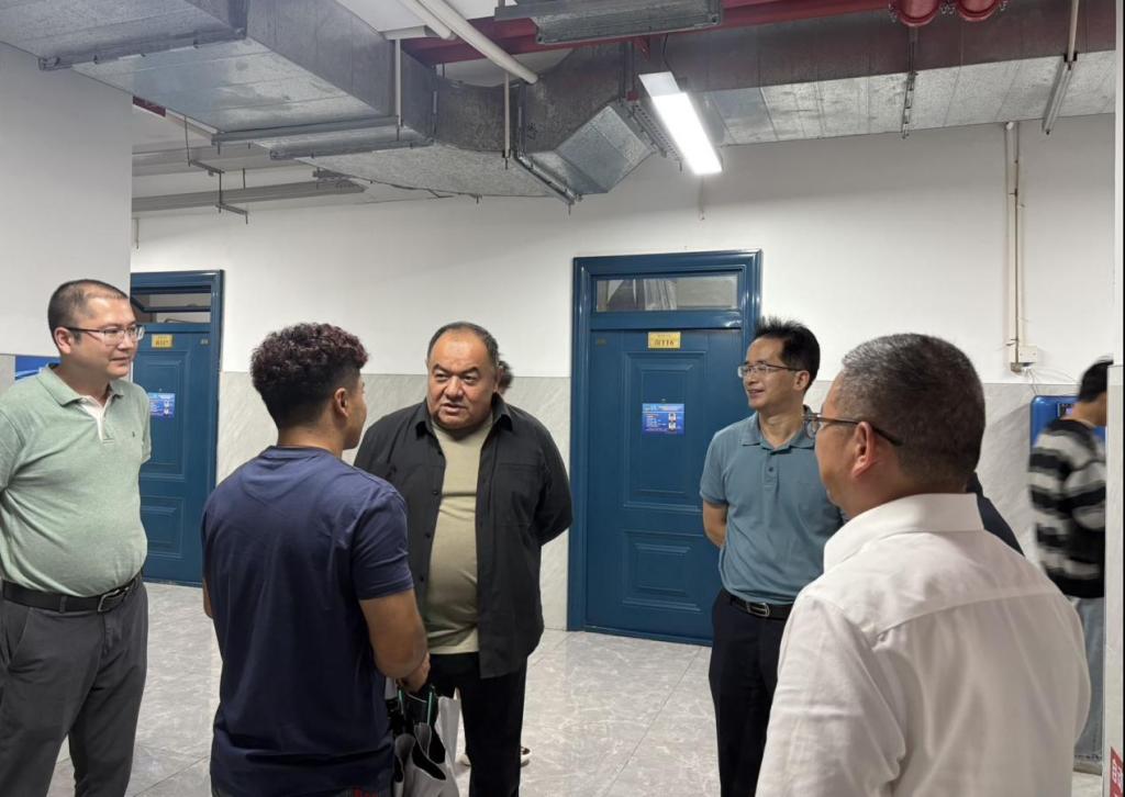 9月24日,新疆驻湘工作组长阿力木·加拉力、新疆驻湘工作组教育协调小组副组长蒋桂磊、新疆驻湘工作组民警薄金锋及派驻教师卡依萨尔·阿不都等人来永利开展调研。永利党委委员袁勤及学工部相关人员陪同调研。(文/倪鑫庭 审稿人/一审:张艳霞 二审:尼加提 三审:曹毅)