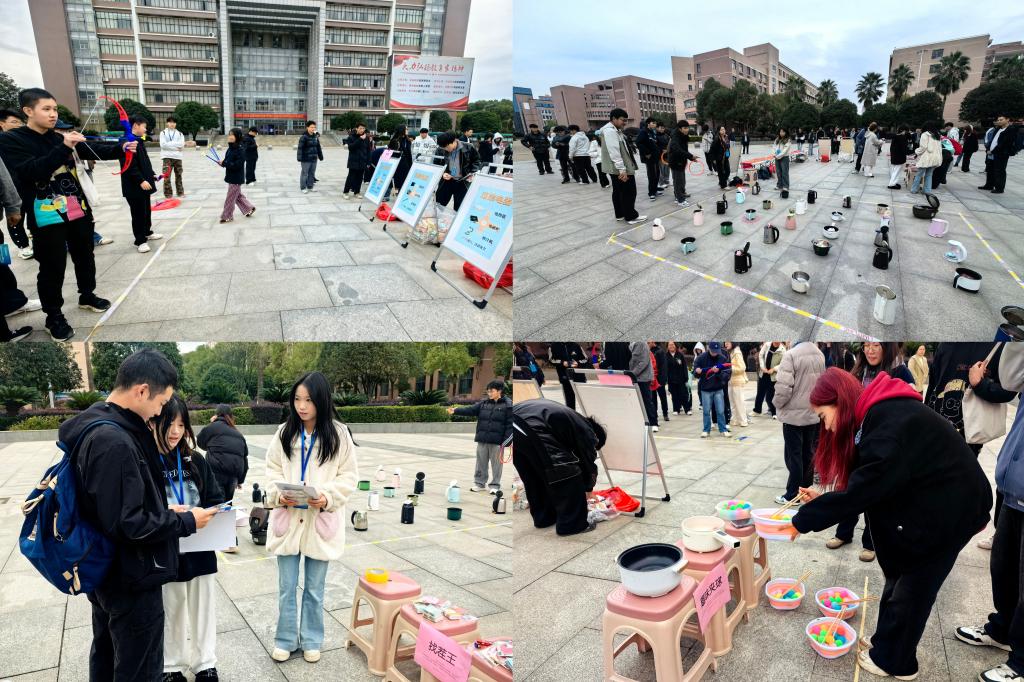 活动现场设置“趣味夹球”“射箭挑战”“圈圈乐”“找茬王”等互动环节,将宿舍安全知识融入游戏场景,学生在识别违规电器、作答安全考题的过程中深化认知。同时,活动结合心理关怀互动,帮助学生缓解学业压力,传递积极心态,彰显学校“育心育德、安全先行”的教育理念。