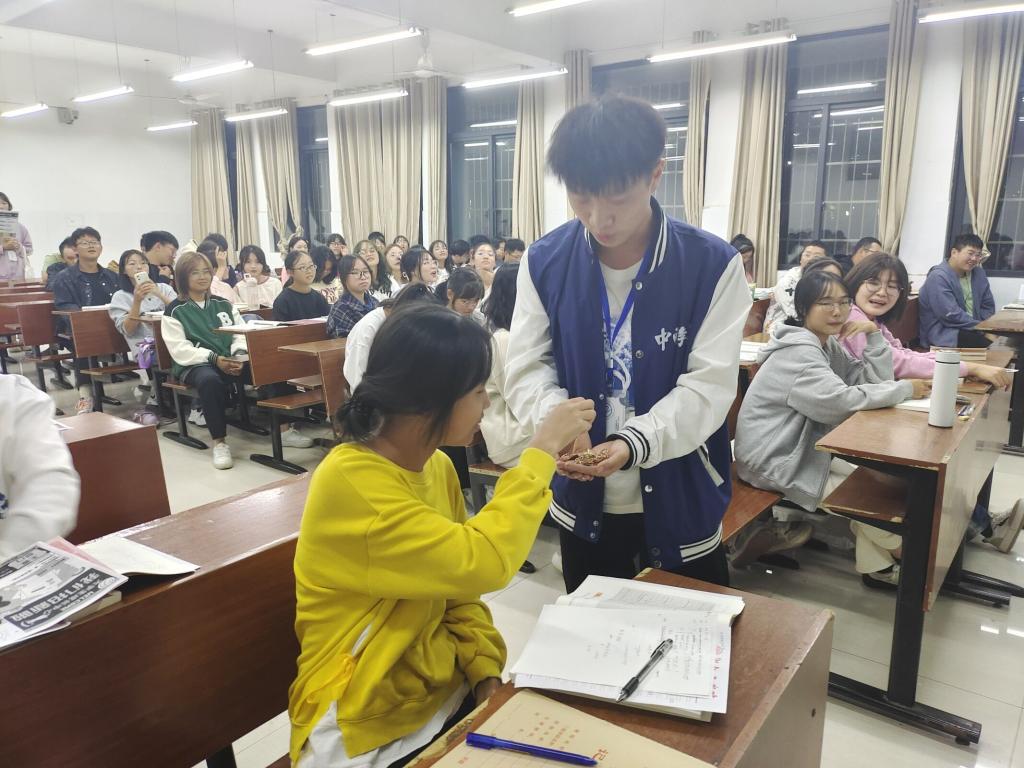 图为朋辈互助员参与主题班会宣讲剪影