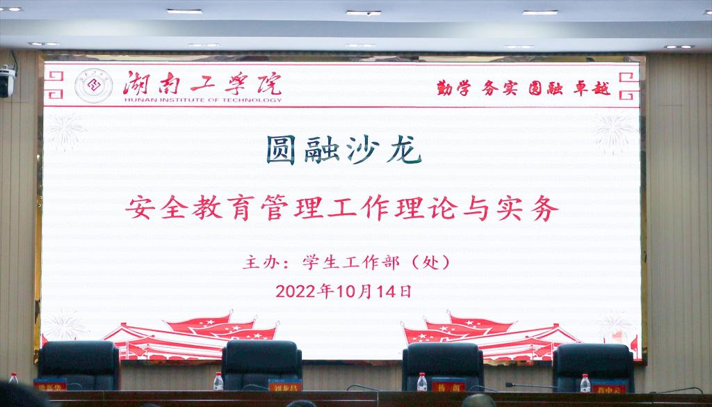 为进一步加强校园安全稳定,10月14日,永利在船山报告厅“安全教育管理工作理论与实务”圆融沙龙。学生工作部(处)部长曹毅出席并主持活动,学生工作部(处)副部长周燕斌、刘赢时,各二级学院党委副书记、学工办主任,全体辅导员参加活动。