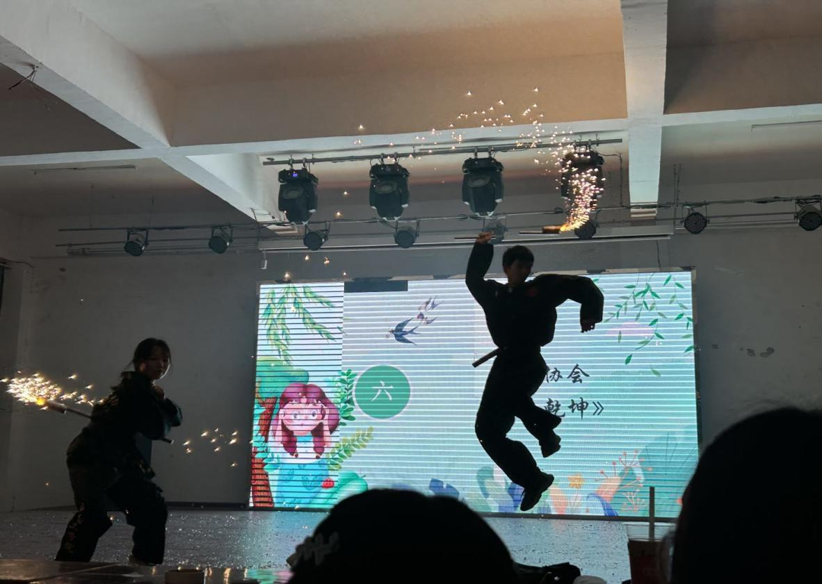 “四月的芳菲,温暖如约而至,是馈赠是温柔的好天气和慢慢变好的自己”大会开始主持人热情的欢迎同学们的到来并宣布晚会开始。去拼搏,去努力是他们的信念,去热爱去绽放是他们的风采,第一个节目由街舞社带来《yonce》,在观看舞蹈时台下的观众也被他们给带动,每个观众都激情呐喊融入这热情的氛围。台上的舞者每个动作都全力以赴,每个舞者都自信飞扬展示着他们的风采。与街舞的激情刚劲相比,交谊舞所体现的是一种柔和的美。在街舞社之后,交谊舞协会给我们带来了舞蹈《心引力》和《万有引力》,一刚一柔两种不同的美给了观众不同的审美体验,让观众领略其中的艺术美。既然是晚会就不能只有舞蹈还得有音乐的熏陶,在接下来的节目中《林宥嘉》,《走马》,《我记得》,《心墙》轮番登场给观众带来了一场视听盛宴。话剧是一场小人生,我们可以在话剧中体会人生百味领悟人生的道理,在1900话剧社带来的《正法柔情》中法律与仁义的矛盾引发了同学们的思考。武术是中国的传统文化之一,习武可以有跨艰难而含笑,历万险而傲然的气魄,武术协会带来的《武动乾坤》虚领顶劲,沉肩坠肘台下的观众心潮澎湃,跃跃欲试,一下子就抓住了观众的心。