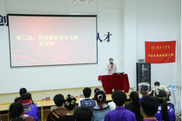 首先,校团委副书记毛娜代表学校团委致贺词,她表达了对少数民族预科教育部第一届团委学生会成立的祝贺,也对校团委学生会队伍的壮大表示欢迎!毛娜也提出了几点要求,一是要讲政治,二是要守纪律,三是要练本领,四是要有担当,勉励在场青年勇挑时代重任,砥砺前行,不负韶华。