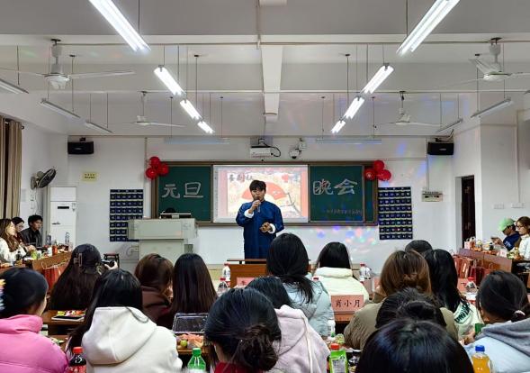 在辞旧迎新之际,为活跃校园文化氛围,增进俱乐部成员间的情谊,数智财务俱乐部于2024年12月27日成功举办了元旦晚会。本次晚会通过精彩纷呈的节目表演、趣味盎然的游戏环节和激动人心的颁奖环节,为全体会员带来了一场欢乐温馨的聚会,共同迎接新的一年。商学院副院长朱纪红和会计教研室副主任杨英莅临指导。