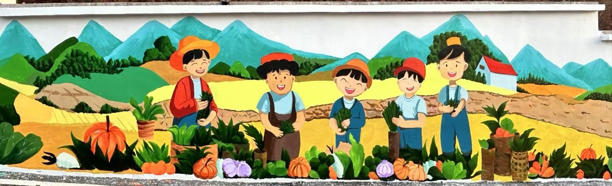 此次墙绘活动围绕“产业兴旺、生态宜居、乡风文明、治理有效、生活富裕”主题展开,在驻村工作队的支持与帮助下,经过一周的辛勤工作,完成了三面主题各异、特色鲜明的大型墙绘作品。