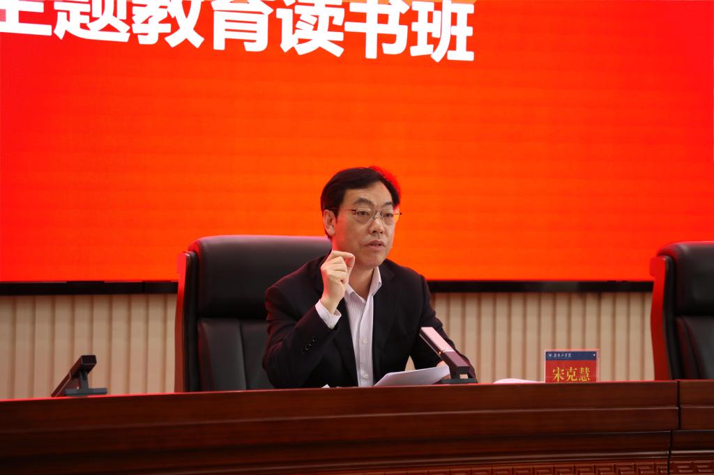 宋克慧以《深入学习贯彻习近平新时代中国特色社会主义思想,为学校事业高质量快速发展凝心铸魂、踔厉奋发》为题作动员讲话。他指出,举办读书班是不折不扣贯彻落实中央和省委关于主题教育部署、推动主题教育走深走实的重要环节,对于我们强化创新理论武装、增强干事创业担当、提高履职尽责能力具有重要意义。我们关键少数务必要把“学思想”抓紧抓实,先学一步、深学一层,做好表率,带动全校广大党员干部层层跟进,推动永利主题教育取得实实在在的成效。