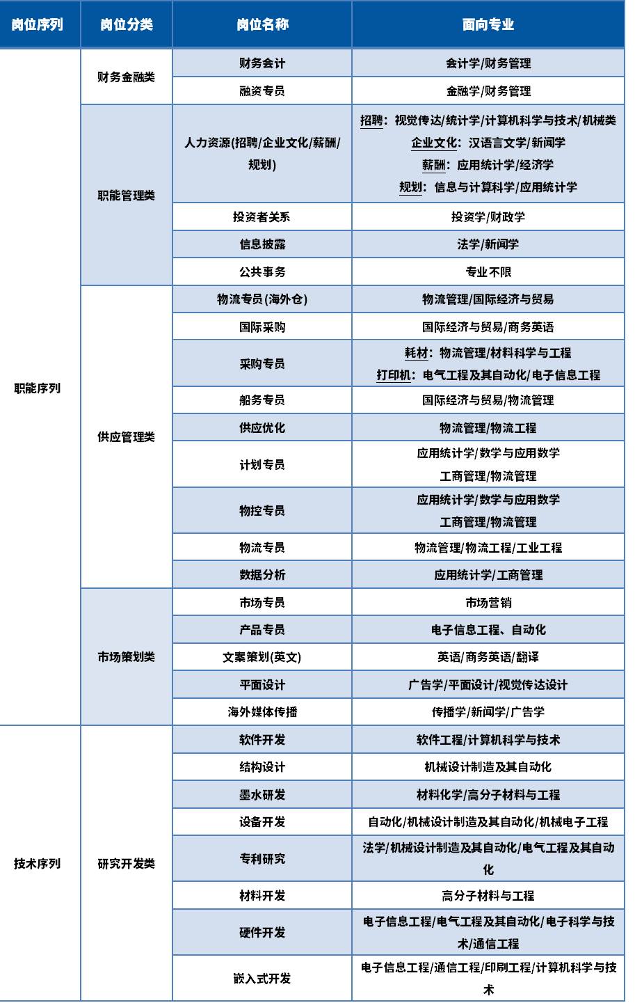 4、本科、硕士研究生招聘岗位类别及需求专业: