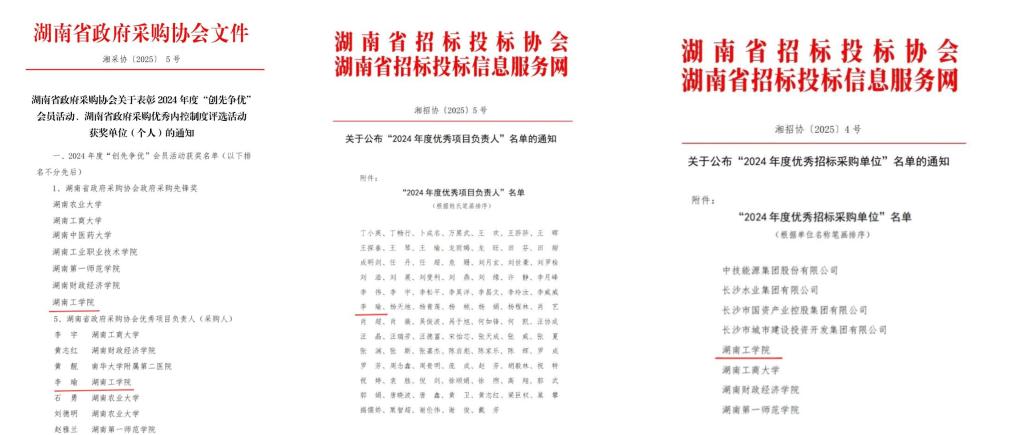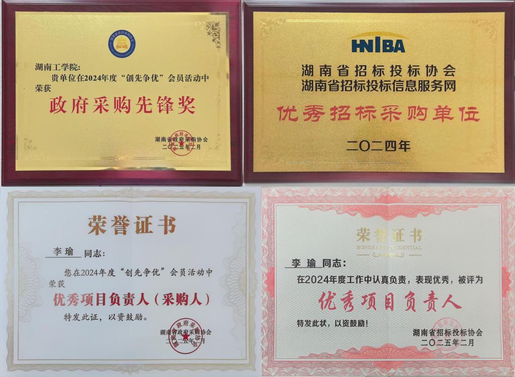 此外,永利招标招投标管理办公室李瑜同志同时荣获了招标投标协会“2024年度优秀项目负责人”称号和湖南省政府采购协会“2024年度优秀采购人”荣誉。